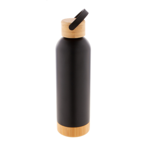 Rozsdamentes acélból készült duplafalú termosz, bambusz hordozható fedéllel és talppal, 500 ml.