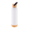Rozsdamentes acélból készült duplafalú termosz, bambusz hordozható fedéllel és talppal, 500 ml.