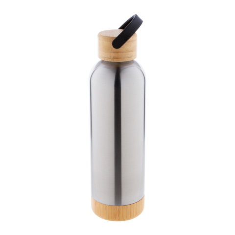 Rozsdamentes acélból készült duplafalú termosz, bambusz hordozható fedéllel és talppal, 500 ml.