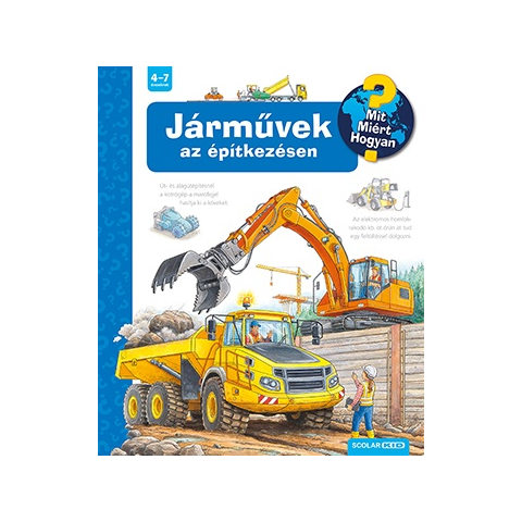 A népszerű Mit? Miért? Hogyan? sorozat 56. kötete az építkezésen megforduló autók, teherautók, munkagépek világába vezeti be az óvodás és kisiskolás korosztályt. Legyen szó házépítésről, út-, alagút- vagy játszótérépítésről, minden kérdésre választ kaphatnak a gyerekek. Honnan jönnek a munkagépek az építkezésre? Ki viszi a gépeket az építkezésre? Mi minden tudnak a markolók? Miért nincs mindegyik markolónak kereke? Mivel szállítják a csöveket,