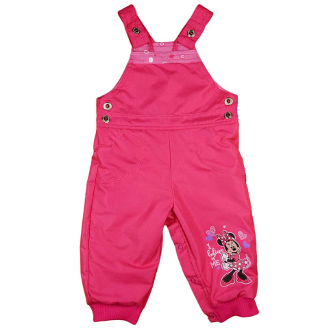 Bélelt vízlepergetős kertésznadrág Minnie egér mintávalEredeti Disney termékÁllítható kantáros vízlepergetős, bélelt kertésznadrág Minnie egér mintával nyomva.Minőségi magyar termék Anyaga: 100% pamut Minőség: I. osztály