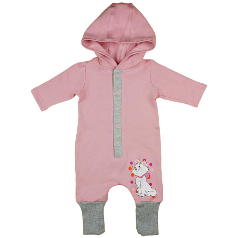 Andrea Kft. Belül bolyhos, kapucnis baba overál Marie cica mintával rugdalózó árgrafikon