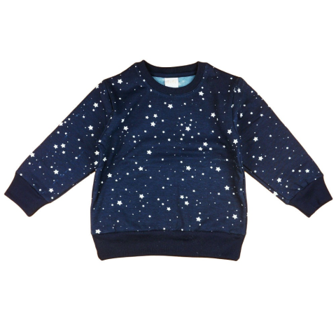 Csillagokkal teli égboltot idéző, sötétkék színű pulóverünk a kisfiúk számára készült, hogy melegséggel és kényelemmel ölelje körbe őket a hideg napokon. A belül bolyhos anyag extra meleget biztosít, miközben a csillagos minta a végtelen univerzum izgalma