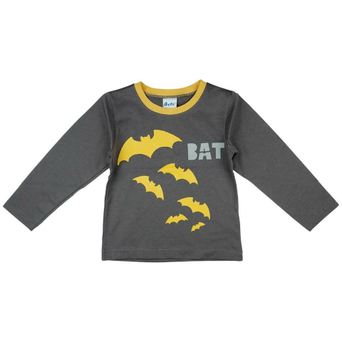 Fedezd fel ezt a denevéres hosszú ujjú fiú pólót, amit a kis felfedezők mind imádni fognak! A póló szürke alapszínén kiemelkedik a vidám denevéres minta, ami garantáltan feldobja a mindennapokat. A póló kiváló minőségű, Magyarországon készült termék, amel