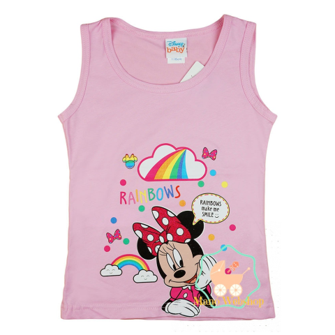 A Disney Minnie szivárványos lányka trikó igazi kincs a kicsi Disney rajongók számára. A híres Minnie egér vidám képe díszíti a fehér alapon, ami garantáltan mosolyt csal a kislányok arcára. Az ujjatlan kialakítás tökéletes választás a meleg nyári napokra