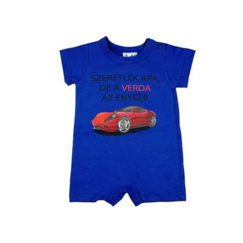 A Szeretlek apa, de a Verda az enyém! feliratos napozó a kisfiúk kedvence lesz! A könnyed, rövid ujjú fazonnak köszönhetően még a legforróbb nyári napokon sem okoz majd gondot a viselete. A kék színű napozó a vállon és a lábszáron található patentokkal kö