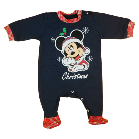 1 kép Andrea Kft. Hosszú ujjú, belül enyhén bolyhos baba rugdalózó karácsonyi Mickey egér mintával