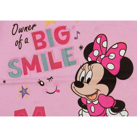 A Minnie egér mintával díszített hosszú ujjú kislány póló a Disney eredeti terméke, melyet Magyarországon készítenek. Az enyhén rugalmas pamut anyagból készült póló a kislányok ruhatárának praktikus alapdarabja, amit nadrággal vagy szoknyával egyaránt vis