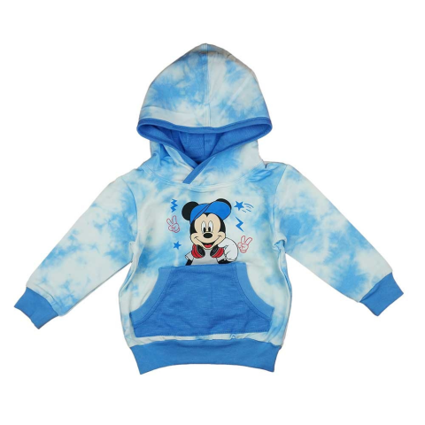 Kapucnis kisfiú pulóver batikolt Mickey egér mintával Eredeti Disney termék Nagyon menő és vagány ez a kapucnis batikolt anyagból készült pulóver, óriás elsőzsebekkel és vidám Mickey egér mintával az elején. Enyhén rugalmas, minőségi vékonyabb pamut anyag