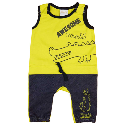Vidám krokodilos mintával díszített ujjatlan rugdalózó, amely könnyű és kényelmes viselet a meleg időszakokra. A zöld alapszín és a játékos állati minta garantáltan tetszeni fog a kicsiknek. A vállán praktikus patentok, a lábszáron pedig rugalmas gumi biz