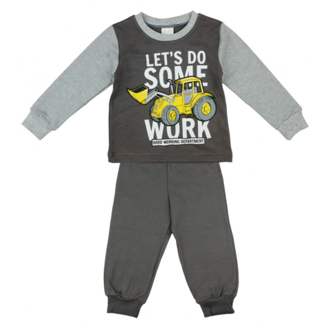 Egy álomszép, markoló mintás kétrészes pizsama, amit minden kisfiú imádni fog. A sárga színű, hosszú ujjú felsőn játékos markoló minta és felirat található. A pizsama nadrágja kényelmes és mozgásra ösztönöz - ideális a hosszú alvásokhoz és a délelőtti lus