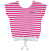 A Mini&Me kerek nyakú, hasban húzott lányka póló remek választás a meleg évszakra. A 100% pamutból készült, vékony anyagú ruhadarab vállat szabadon hagyó szabása és az alsó részen futó zsinór biztosítja a kényelmes viseletet. A pasztell pink árnyalat és a
