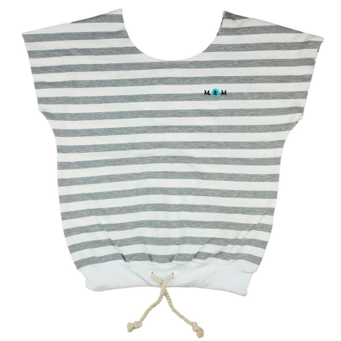 Stílusos és kényelmes mindennapi viselet, amit a Mini&Me kerek nyakú, hasban húzott női pólója nyújt. Ez a szürke darab vállat szabadon hagyó kivitelezésű és 100% pamutból készült, így puha és kellemes az érzete. A vékony melegítő anyag miatt ideális a hű