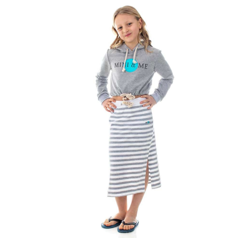 A szürke lányka szoknya ideális választás, amely kényelmes, minőségi viselet minden évszakra. A 100% rugalmas pamutból készült darab tavasztól nyárig tökéletesen viselkedik. A magas slicek mindkét oldalon biztosítják a mozgásszabadságot, míg a gumis derék