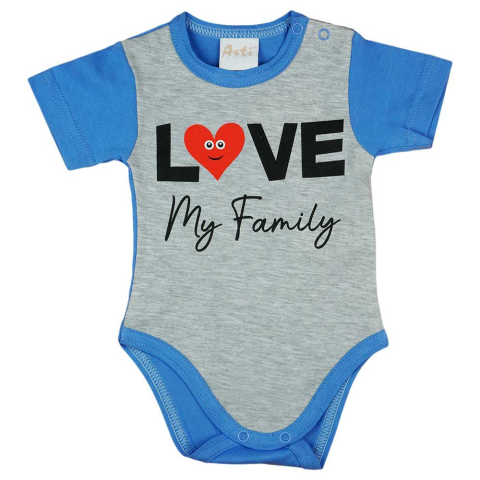 1 kép Andrea Kft. "Love my family" feliratos rövid ujjú baba body kék