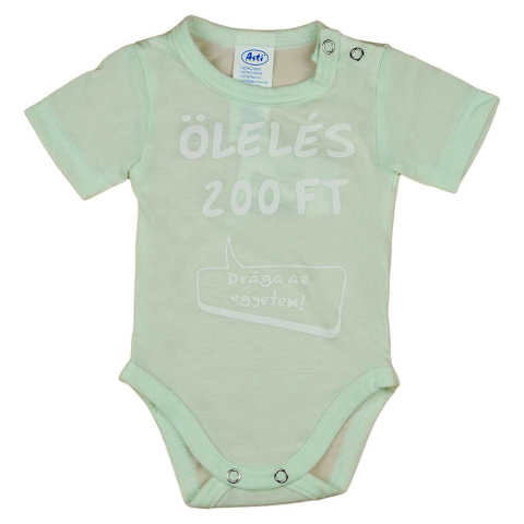 1 kép Andrea Kft. "Ölelés 200 Ft" feliratos rövid ujjú baba body zöld