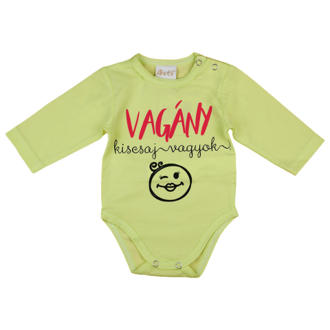 1 kép Andrea Kft. "Vagány kiscsaj vagyok" feliratos hosszú ujjú baba body zöld