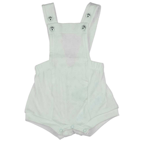 A kisbabád ellenállhatatlanul cuki lesz ebben a retró kantáros baba napozóban! A divatos, egyedi stílusú, tengerészmintás gombokkal díszített napozó egyszínű, anyagában lyukacsos kialakítású. A vállpánt állítható, így növekedhet vele a csemetéd, és a lába