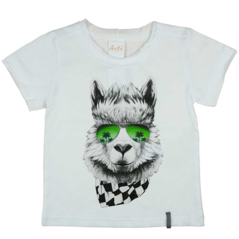 Ebbe a vidám fehér pólóba szeretni fogja magát a kisfiú! A mókás láma mintával díszített előlapja garantáltan a gyerekek kedvence lesz, miközben a dupla szegéllyel készült nyakkivágás és ujjak még egy kis extra stílust adnak az öltözékhez. A pamutból kész