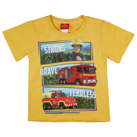 Kisfiúd számára készült ez a ragyogóan sárga, rövid ujjú póló, melyen a mindenkinek kedvenc bátor tűzoltója, Sam díszeleg. A póló 100%-ban pamutból készült, így garantáltan kényelmes és bőrbarát viselet lesz a meleg nyári napokon. A minőségi, I. osztályú