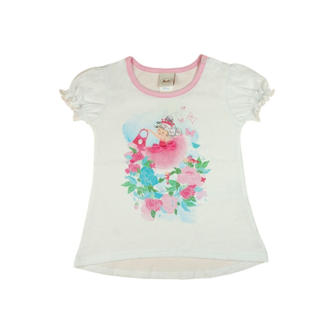 A kislányok stílusát tökéletesen kiegészíti ez a fehér, rövid ujjú lányka póló. A vidám lányos minta biztosan mosolyt csal a hercegnőd arcára, míg a buggyos, elől íves kialakítás gondoskodik a kényelemről és a játék közbeni szabad mozgásról. A póló 100% p