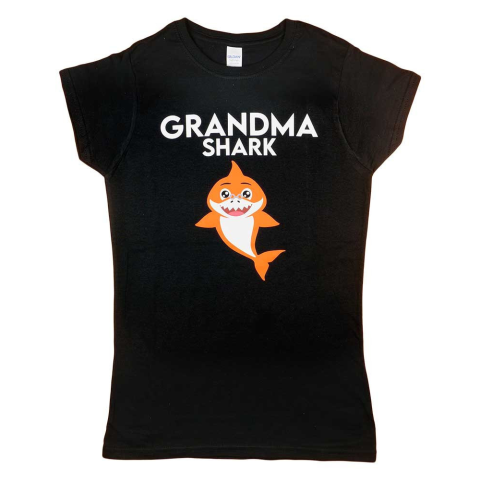 1 kép Andrea Kft. Rövid ujjú női póló cápás mintával "Grandma shark" felirattal