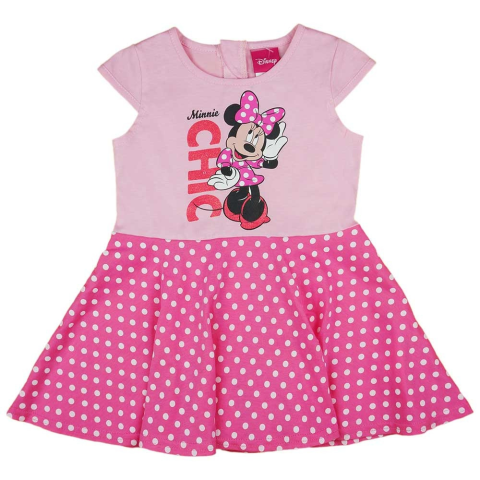 Kedves kislányodnak garantáltan tetszeni fog ez a csodálatos Minnie egér mintás rövid ujjú ruha! A fodros, pörgős szoknyarész nem csak nagyon aranyos, de a mozgásban is maximális szabadságot biztosít kicsi lányodnak. A kényelmes, 100% pamut anyag pedig lá