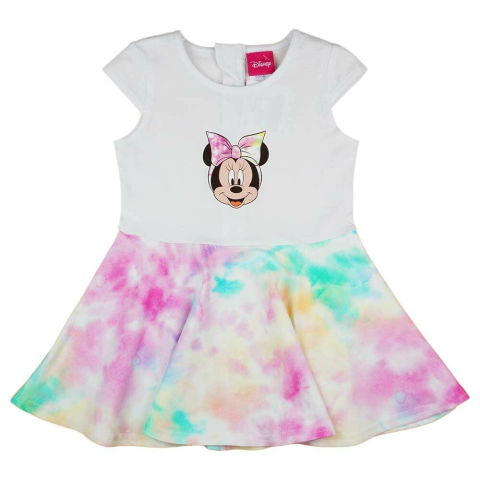 Szivárványos batikolt kislány nyári ruha Minnie egérrelEredeti Disney termékPraktikus, kényelmes és nagyon csinos viselet a legmelegebb napokra is ez a szivárvány színű - fehér nyári ruha. Anyaga rugalmas pamut, hátrészén cipzáras, így tökéletesen illesz