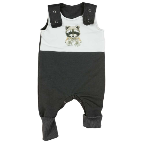 Ujjatlan baba rugdalózó állatos mintával 2:1 méret Igazán cuki ez az ujjatlan baba rugdalózó, amely 2 méretes, így együtt nő a gyerekkel - mind a lábrész, mind a kantár része állítható, az elején állat figurás mintával nyomva. Praktikus és kényelmes visel