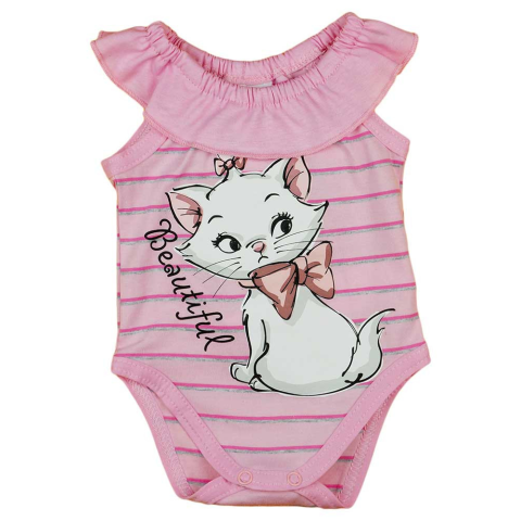 Egy igazi kislányos álom ez a Marie cicás ujjatlan baba napozó, a fodros nyakrész pedig még cukibbá varázsolja. A szürke alapszínű, rózsaszín mintás ruha tökéletes választás a nyári hónapokra, hiszen vékony, 100% bababarát pamut anyagból készült, ami nemc