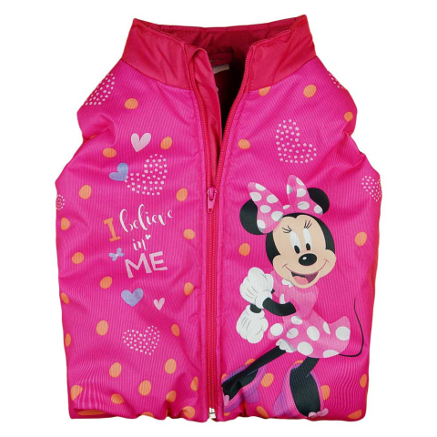 A Minnie egér mintájával díszített, vízlepergetős mellény kislányoknak, ami nem csak gyönyörű, de praktikus is. Ez a bélelt mellény tökéletes választás a hidegebb napokra, hiszen melegen tartja a gyermeket, miközben szárazon is. Az oldalt található zsebek