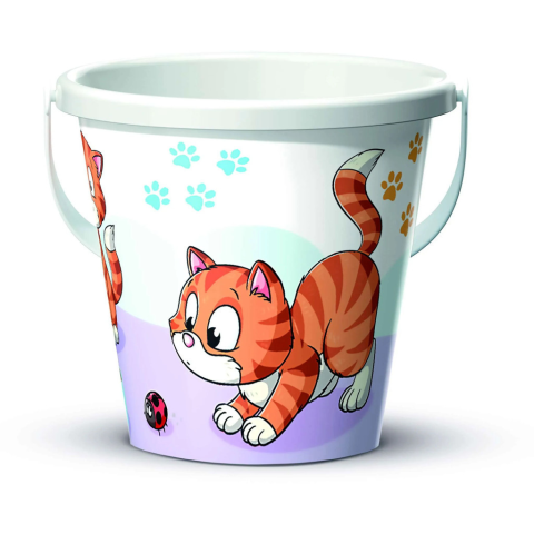Cicás Homokozó vödör Ezzel a vidám cicás homokozó vödörrel garantált a szórakozás a strandon vagy a játszótéren! Az aranyos, játékos cicákkal díszített vödör nemcsak bájos kinézetével hódít, hanem praktikus méretével is ideális választás homokvárépítéshez
