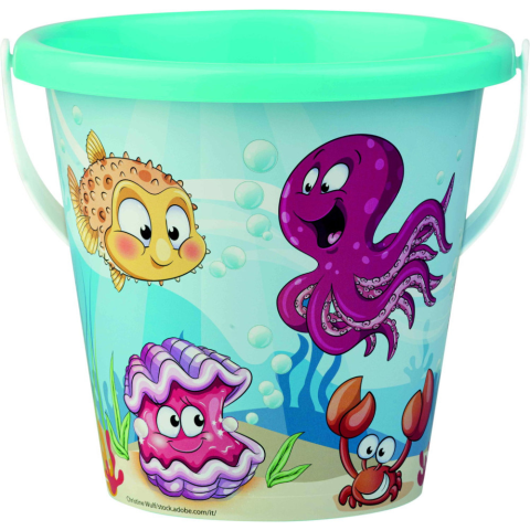 Tengeri állatos Homokozó vödör Ez a gyönyörűen díszített vödör, méreteivel (17 x 16 cm) tökéletes társ a homokos játékokhoz, lehetővé téve a gyerekek számára, hogy saját tengeri világukat hozzák létre a homokban. A tengeri állatok inspirálta dizájn nem cs