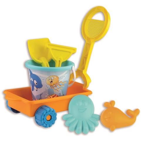 Homokozó készlet - ajánlott 1 éves kortól, forma/formák, vödör, lapát, kézi gereblye és kiskocsi a csomag része, 6 db-os készlet, polip és bálna formák, műanyag, kék, narancssárga és sárga színben A hasznos Androni Homokozó szett kocsival - Boldog halacska termék legfontosabb jellemzői Ahhoz, hogy ötletes homokvár épülhessen, a gyerekeknek különféle felszerelésre is szükségük van Forma/formák,