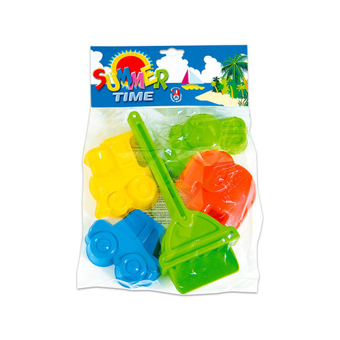4 járgányos homokozóforma, mely arra vár, hogy különleges alkotásokat készíts homokból. Alkotás során segítségedre lesz a játékban a szuper lapát és gereblye, melyet most megtalálsz a csomagban. Már csak egy kis homokra van szükség és indulhat is a játék. A termék kinézete eltérhet a képen láthatótól. A feltüntetett ár 1 szettre vonatkozik, melyet véletlenszerű változatban szállítunk. Csomagolási méretek: 27 x 34 cm.