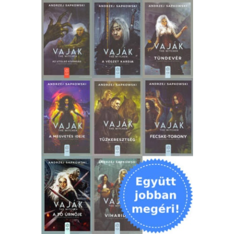 Több könyv egy helyről, fárasztó keresgélés nélkül!Továbbá Magyarországra van ingyenes házhoz szállítás (pl.: ingyenes a szállítás Sprinter vagy MPL futárszolgálattal).Ráadásul a könyvek egyesével megrendeléséhez képest így általában egy kötetre kevesebb kartoncsomagolás (és hulladék) jut. A csomag tartalma: Az utolsó kívánság [1. könyv], A végzet kardja [2. könyv], Tündevér [3. könyv], A megvetés ideje [4. könyv], Tűzkeresztség [5. könyv], F