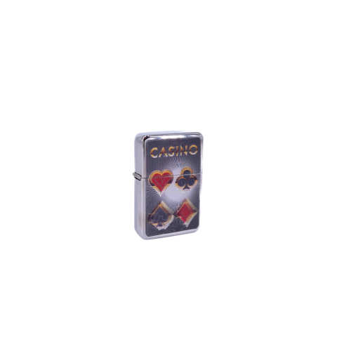 Angel benzines öngyújtó 3D Casino felirattal és a francia kártya színeivel. A króm színű öngyújtó nemesacél házzal készült. A benzinnel tölthető öngyújtóval semmi más nem tudja felvenni a versenyt ha szeles idő van. A benzines öngyújtók üres állapotban kerülnek forgalomba, ezért érdemes hozzájuk egy benzint is vásárolni.Az ár 1 db-ra vonatkozik. Trafikok és viszonteladók részére lehetőség van kedvezőbb áron egy egész tálcát m