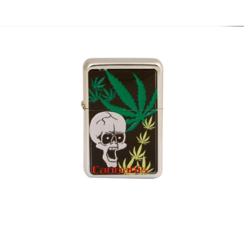 1 kép Angelo Angel Benzines öngyújtó króm - színes cannabis koponya mintás - 1