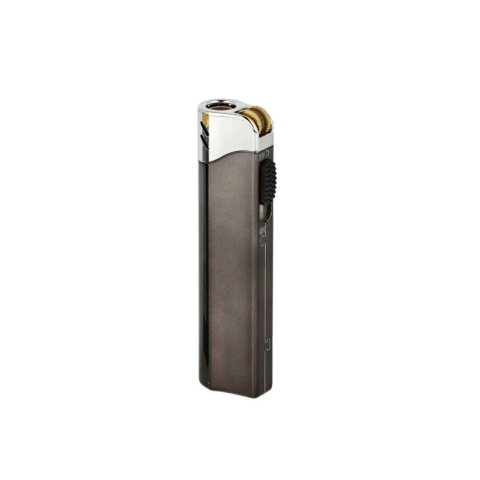 Angel márkájú, antracit színű, fémházas szúrólángos öngyújtó, ezüst színű felső résszel. Az öngyújtó oldalán lévő csúszkával lehet nyitni, illetve zárni a gázt. A gyújtó újratölthető, a láng állítható és Piezzó gyújtás biztosítja a szikrát.