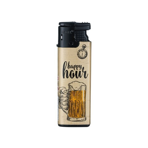 Angel márkájú barna öngyújtó, az elején "happy hour" felirattal. A gyújtó újratölthető, a láng állítható és Piezzó gyújtás biztosítja a szikrát. Viszonteladói partnereink részére: 50 darab rendelése esetén a képen látható kínáló tálcával együtt küldjük. Kérjük előtte regisztráljon.