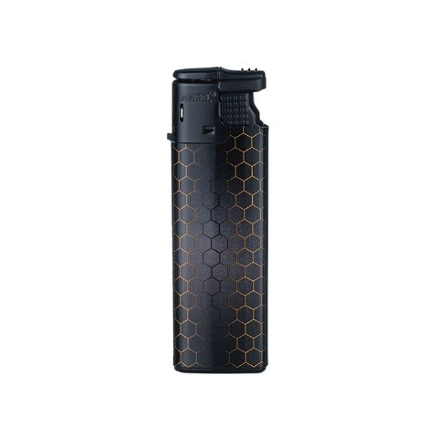 Angel márkájú fekete színű öngyújtó színes carbon mintával. A gyújtó újratölthető, a láng állítható és Piezzó gyújtás biztosítja a szikrát. Viszonteladói partnereink részére: 50 darab rendelése esetén a képen látható kínáló tálcával együtt küldjük. Kérjük előtte regisztráljon.