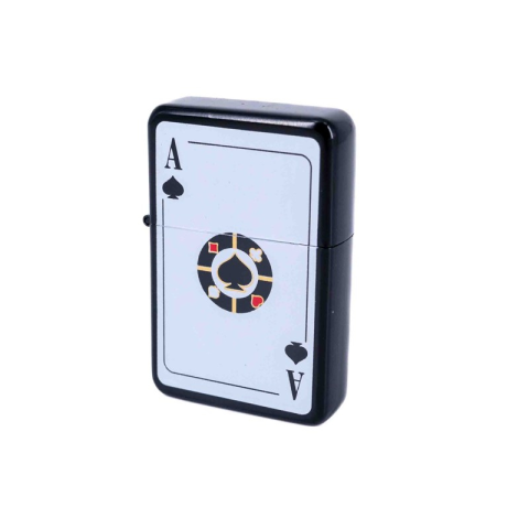 Fekete színű, benzines öngyújtó, ász kártyalap motívummal díszítve. Klasszikus tűzköves vihargyújtó, mely benzinnel tölthető. Az öngyújtó üres állapotban kerül kiszállításra. Amíg nincsen feltöltve addig nem is használható!Méretek: 5,8 x 3,9 x 1,3 cm