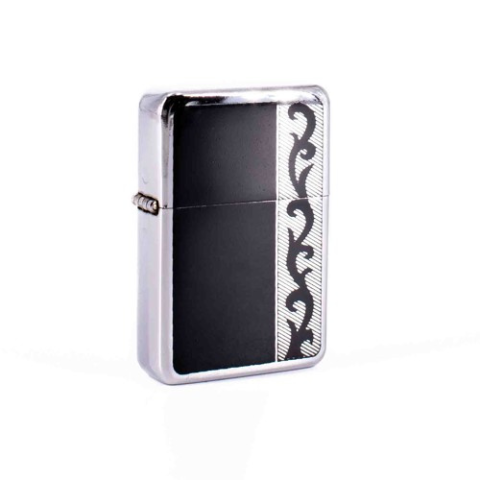 Ezüst színű, fényes króm benzines öngyújtó az elején fekete nonfiguratív mintával. Klasszikus tűzköves vihargyújtó, mely benzinnel tölthető. Az öngyújtó üres állapotban kerül kiszállításra. Amíg nincsen feltöltve addig nem is használható!Méretek: 5,8 x 3,9 x 1,3 cmTrafikok és viszonteladói partnerek részére lehetőség van kedvezőbb áron egész tálca megvásárlására is. A viszonteladói árakhoz kérjük előtte itt regisztráljon.