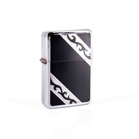 Ezüst színű, fényes króm benzines öngyújtó az elején fekete nonfiguratív mintával. Klasszikus tűzköves vihargyújtó, mely benzinnel tölthető. Az öngyújtó üres állapotban kerül kiszállításra. Amíg nincsen feltöltve addig nem is használható!Méretek: 5,8 x 3,9 x 1,3 cmTrafikok és viszonteladói partnerek részére lehetőség van kedvezőbb áron egész tálca megvásárlására is. A viszonteladói árakhoz kérjük előtte itt regisztráljon.