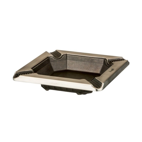 Angelo márkájú, fém szivar hamutál, 4 szivarnak elegendő hellyel. A termék alsó része sötétszürke fém, a felső pereme pedig szálcsiszolt króm. A hamuzó úgy van kialakítva, hogy a szivar vízszintesen tudjon piheni rajta, ezzel egy hosszú, egyenletes égést biztosítva számára. Elegáns megjelenését a szálcsiszolt pereme adja.Méretek: 18 x 18 x 4 cmSúly: 423 g