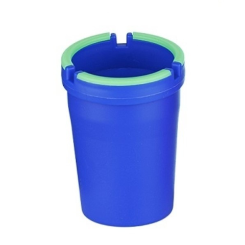 Sötétkék színű autós hamutartó, fluoreszkáló zöld betéttel a tetején. Az autó pohártartójába állítható. Magassága 10,5 cm. Jó minőségű műanyag hamutál, ami akár ajándéknak is tökéletes választás.