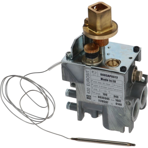 bemenet ø 3/8' F - kimenet ø 3/8'F | termosztát csatlakozás M9x1 | maximális gázbemeneti nyomás 50 mbar | kimeneti nyomás beállítási tartomány | 3÷18 mbar | környezeti hőmérséklet 0÷120°C | kapilláris hossza 1050 mm | izzó ø 4x74 mm Az alábbi típusokho