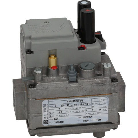 bemenet ø 1/2'F - kimenet ø 1/2'F | hőelem csatlakozás M9x1 | maximális gázbemeneti nyomás 50 mbar | nyomás beállítási tartomány | 3÷18 mbar | környezeti hőmérséklet 0÷60°C | tápellátás 220/240V 50Hz | hosszú gombok | pilóta csatlakozás és OLDALSÓ hőelem