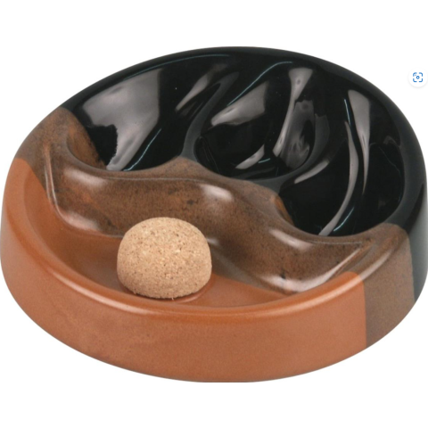 Az Olaszországban készült pipás hamuzó 3 pipa részére elegendő helyet biztosít. A speciális kialakítás segít abban, hogy a hamu és a parázs a pipában maradjon és ne az asztalra kerüljön. A trikolor színű kerámia hamutálban ezen felül van még egy hamu kiverő parafa tuskó ami megvédi a pipánkat! Ez a hamutartó olyan pipások számára ideális, ahol a baráti társaságban többen is pipáznak, így mindenki számára lesz elegendő hely.Átmérője: 18 cmBolti