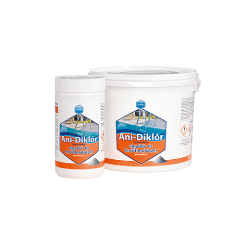 Gyorsan oldódó granulátum 56 % aktív klórtartalommal a baktériumok és különböző fertőző anyagok elpusztítására. Gátolja az algák szaporodását.